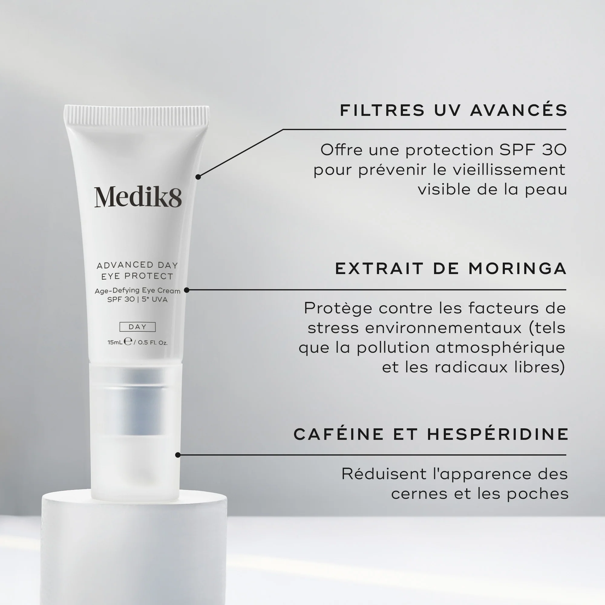 Advanced Day Eye Protect offre une protection UVA SPF 30 5* pour protéger la zone délicate du contour des yeux des effets nocifs et vieillissants des rayons UV et des facteurs de stress environnementaux.