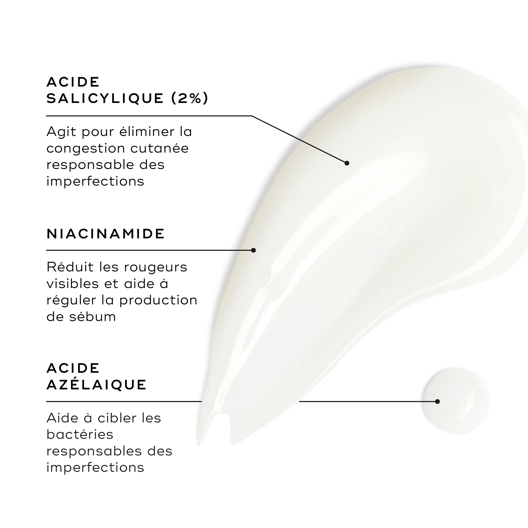 Ce gel de traitement à action rapide est formulé avec de l'acide salicylique à concentration maximale (2 %) pour atténuer rapidement l'apparence des imperfections, calmer les rougeurs visibles et donner au teint un aspect clair et sain.