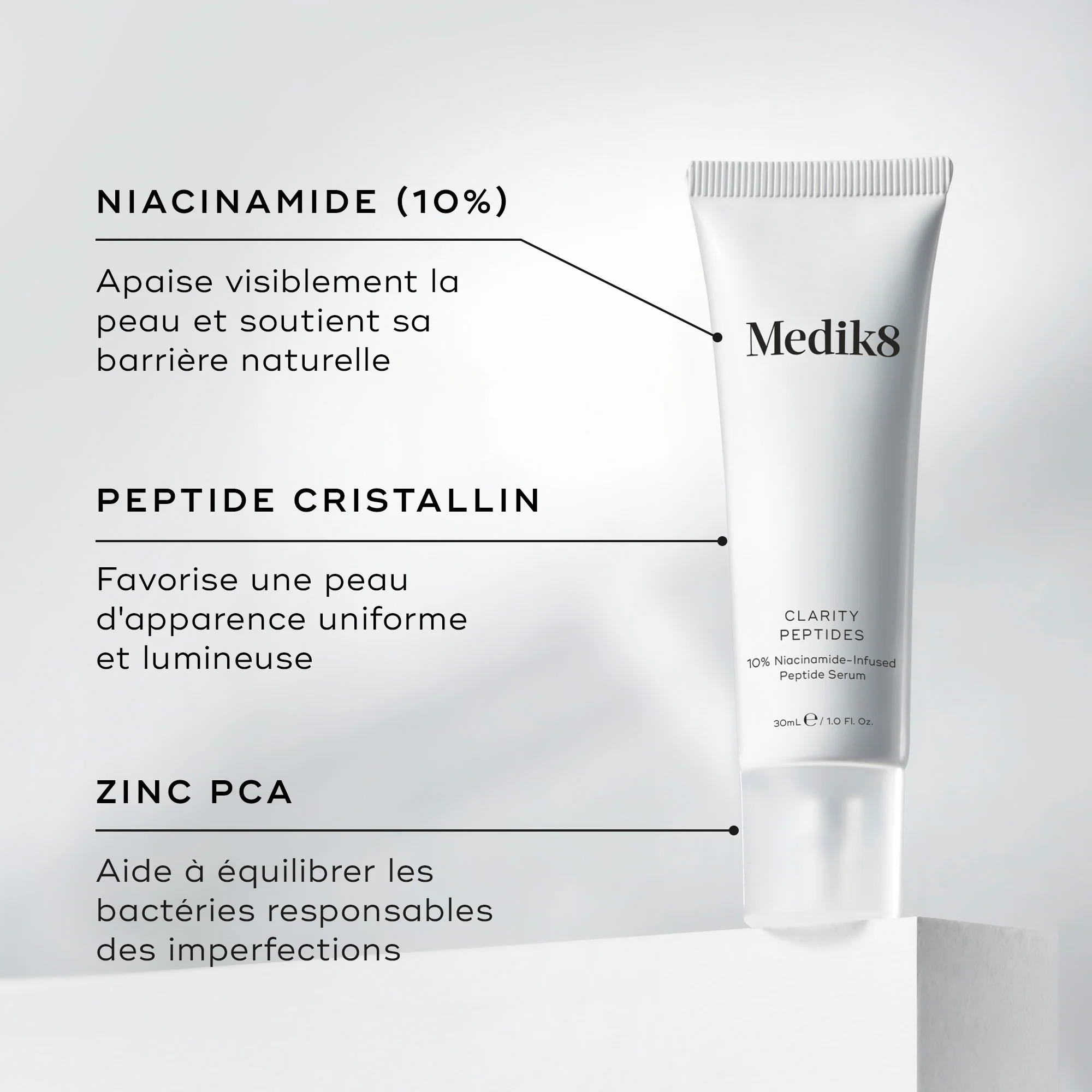 Pour une peau visiblement clarifiée, lumineuse et perfectionnée, choisissez Clarity Peptides.